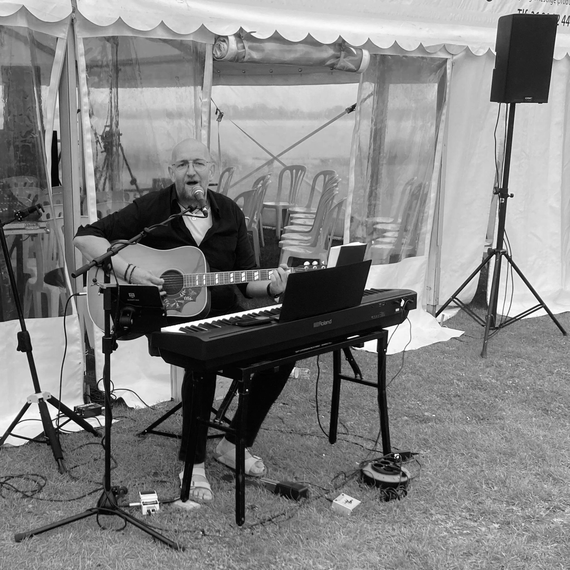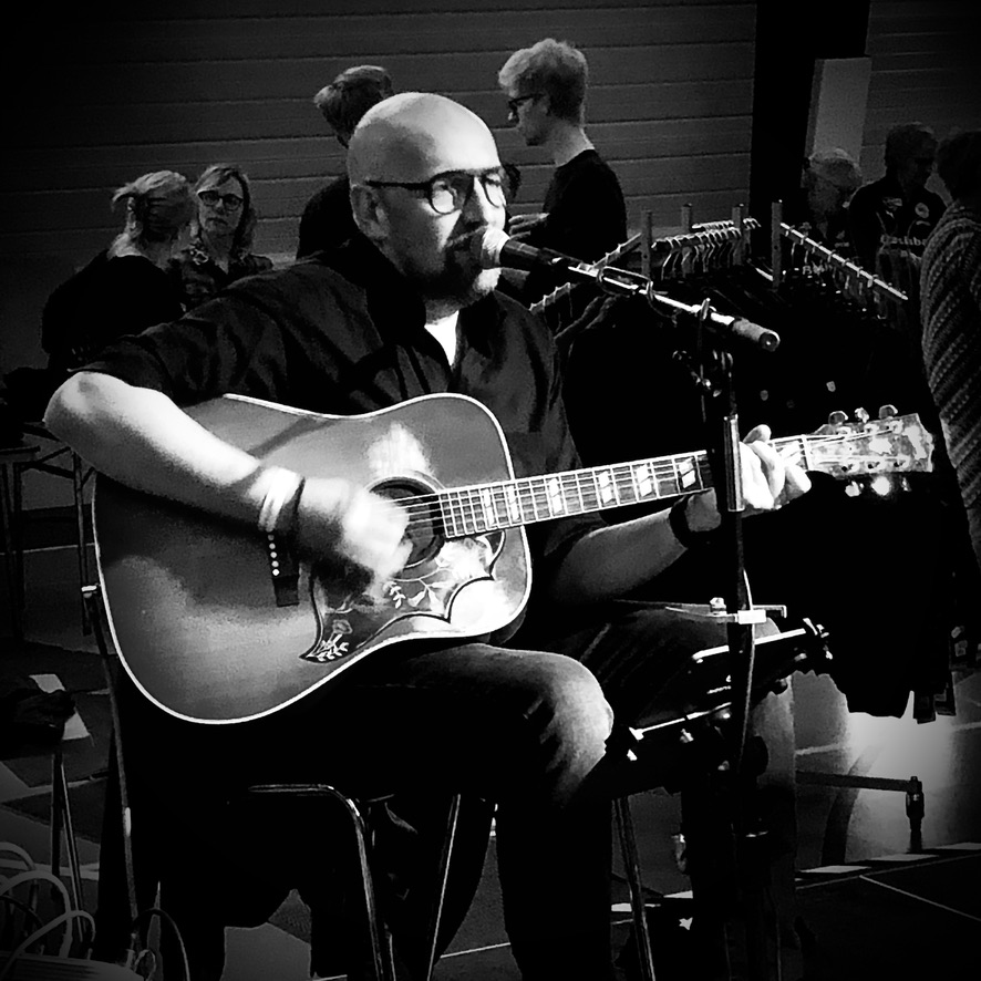 Jeg synger og spiller guitar/fodtrommer, og repertoiret er en god gang "blandede bolsjer" med hits fra 60'erne og frem til i dag.